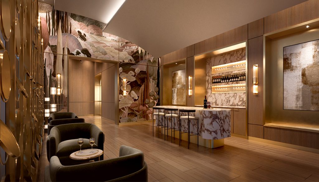 Residents of Towers 1 (36 storeys), 2 (31 storeys), and 3 (32 storeys) will have access to a total of 37,000 square feet of indoor and outdoor amenity space. These world-class facilities will cater to wellness and entertainment, including an indoor pool with a juice bar, a two-storey fitness centre, indoor and outdoor private dining lounges, a wine lounge, and a library. There will also be dedicated spaces for residents who work from home, such as a co-working lounge with a coffee bar. For those with pets, there will be an expansive pet spa providing convenience and luxury.